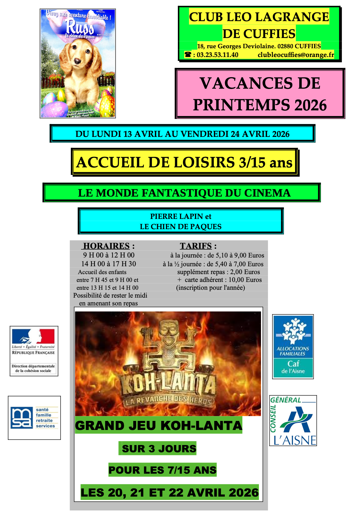 Le Club Léo Lagrange de Cuffies accueille vos enfants pendant les vacances de Pâques.